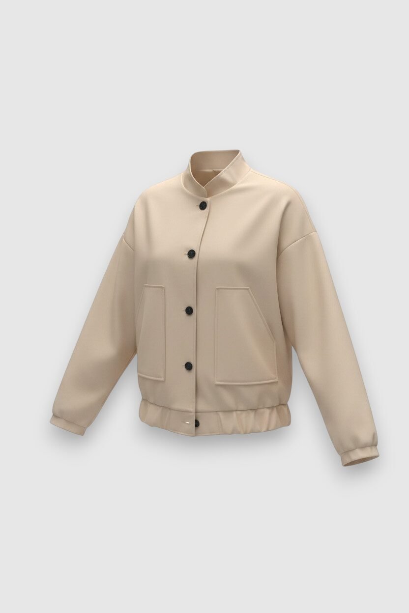 The soft neutral tone enhances its versatility, while the elasticated hem and cuffs create a balanced shape that combines comfort with structure. Large patch pockets add a functional, understated detail, completing the minimalist aesthetic.